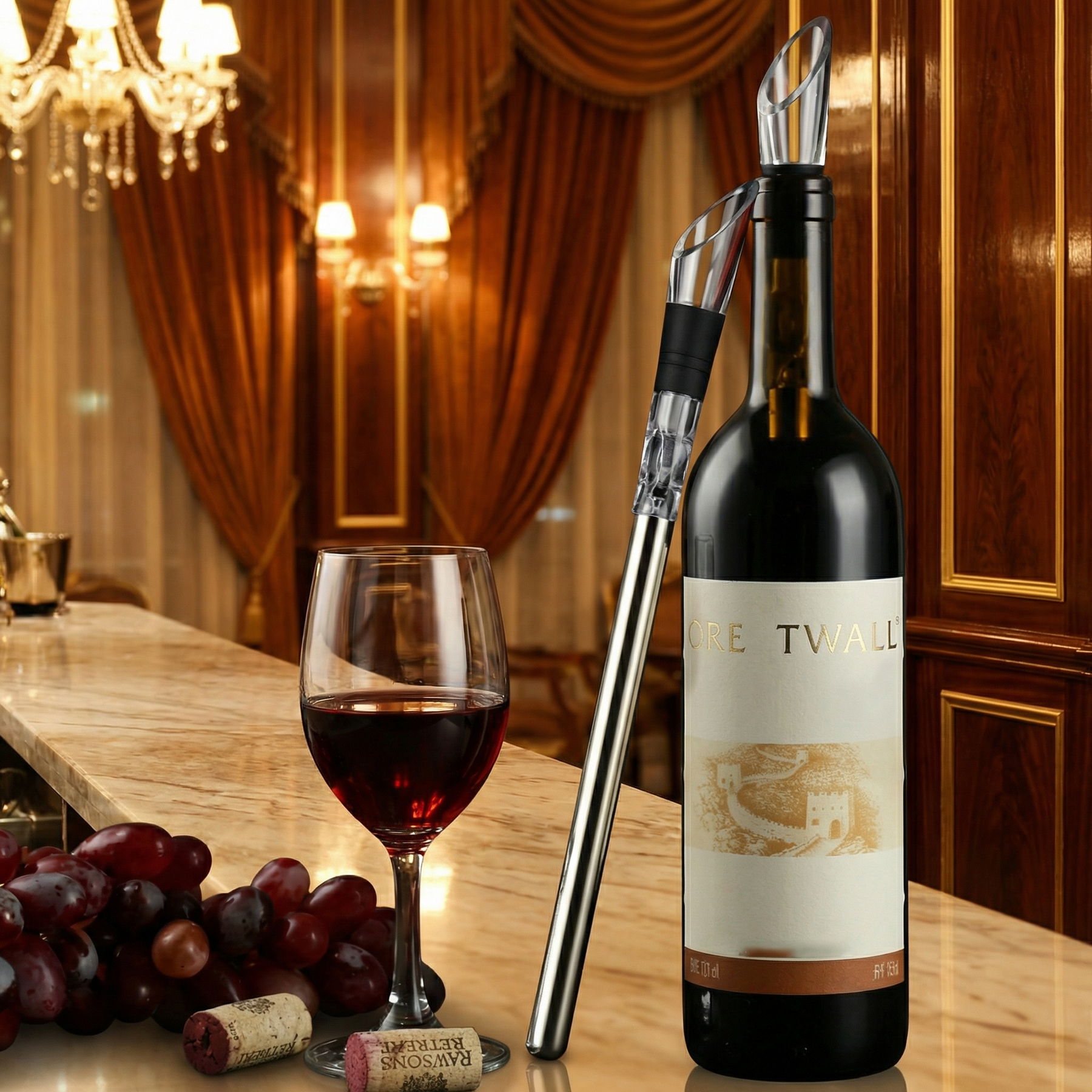 Upplev vin precis som det är tänkt att smaka. Denna eleganta 3-i-1-kylstav kyler snabbt ner ditt vin till optimal serveringstemperatur utan att späda ut det. Den integrerade luftaren öppnar upp aromerna direkt i glaset, medan den droppfria hällpipen ger en ren och kontrollerad servering.
